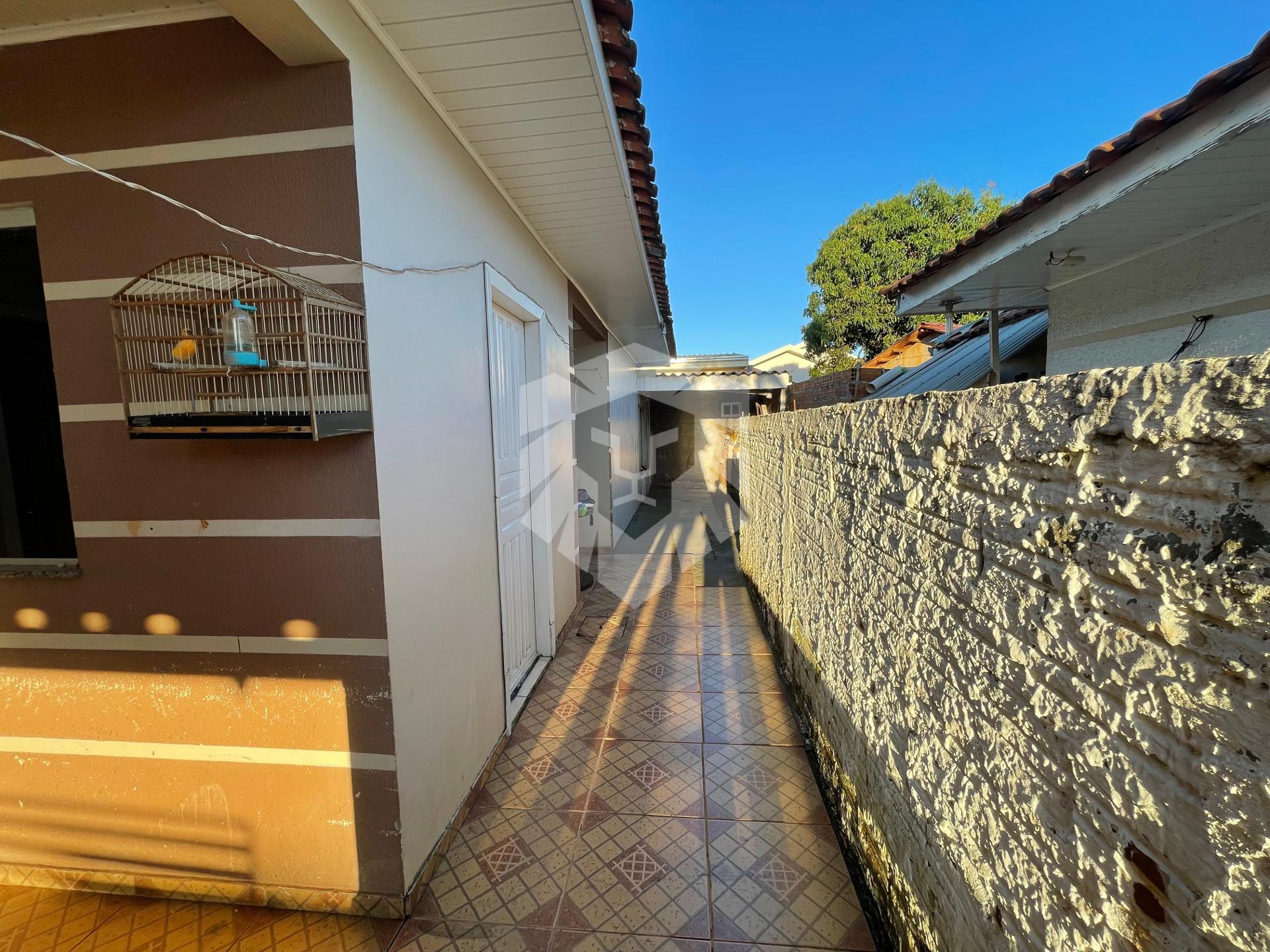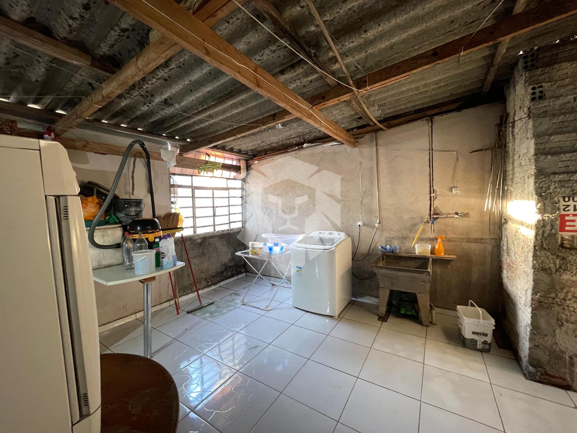 Nos fundos, a casa reserva um verdadeiro espaço de lazer, com uma ampla área de festas e churrasqueira, perfeita para confraternizações e momentos de descontração com amigos e familiares. Há ainda uma lavanderia coberta, que complementa o ambiente com praticidade e conforto.