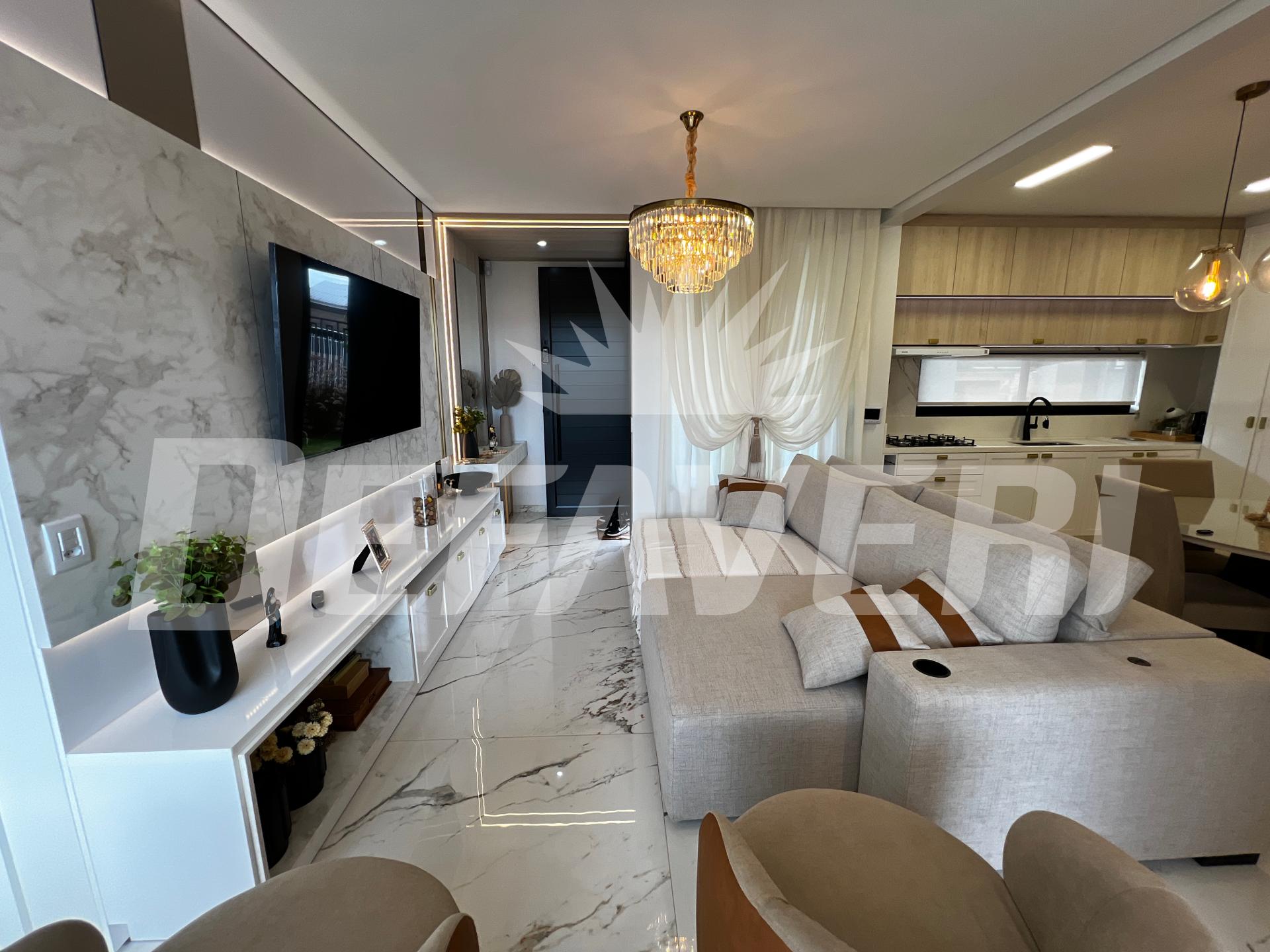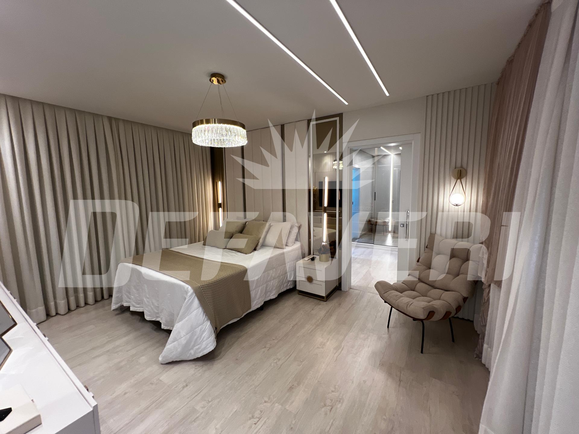 A suíte principal é um verdadeiro refúgio: espaço amplo, iluminação sofisticada, closet espelhado e uma sala de banho com hidromassagem que eleva o conceito de conforto. A área social integra perfeitamente o living à área gourmet e à piscina, criando o cenário ideal para receber amigos e viver momentos memoráveis. Outro grande diferencial é que o imóvel é configurado para automação via Alexa, oferecendo praticidade, modernidade e controle inteligente dos ambientes.